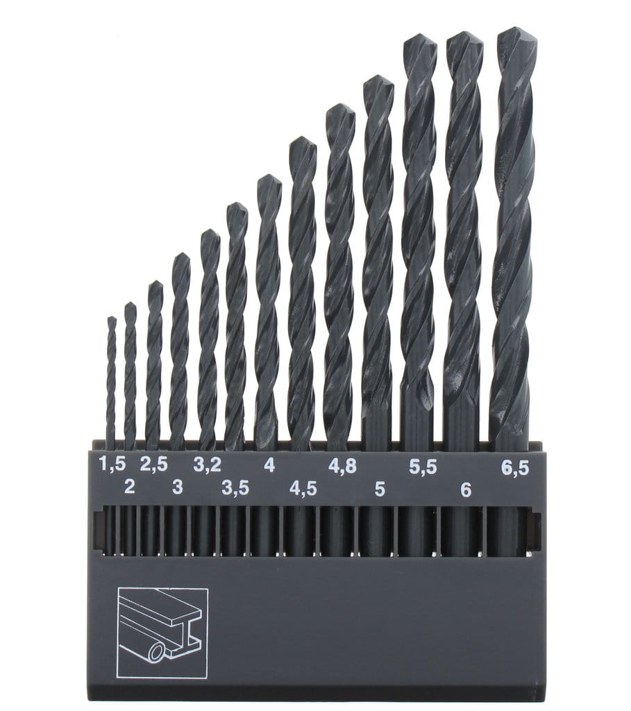 - W zestawie 13 szt wierteł w rozmiarach 1,5-6,5X0,5 mm