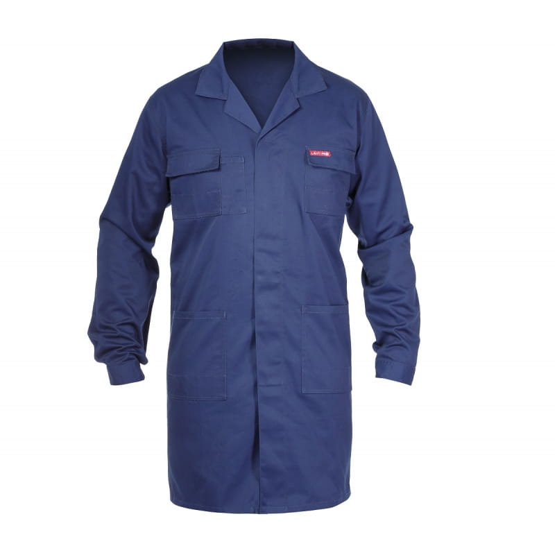 Fartuch wykonany z materiału o gramaturze 260g/m2 (35% bawełny i 65% poliestru). Posiada 5 kieszeni w tym dwie zapinane na wysokiej jakości napy. Dodatkowo fartuch wyposażony jest w oczko na klucze. Podwójne szwy. Dno kieszeni wzmocnione podwójną warstwą tkaniny, zabezpieczającą przed przecieraniem się. Mankiety regulowane, zapinane na guziki. Fartuch posiada wszywkę identyfikacyjną. Odzież posiada certyfikat CE oraz normę EN ISO 13688 i jest w pierwszej kategorii środków ochrony indywidualnej.
