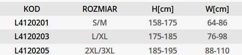 | L4120203 | L/XL | 175-185 | 76-98 |