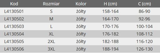 Poniżej tabela z rozmiarami: