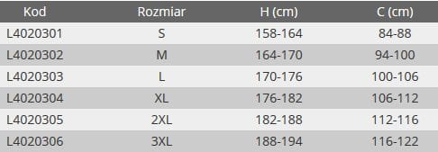 - Każdy z kolorów dostępny jest w 5 rozmiarach: M, L, XL, XXL, XXXL