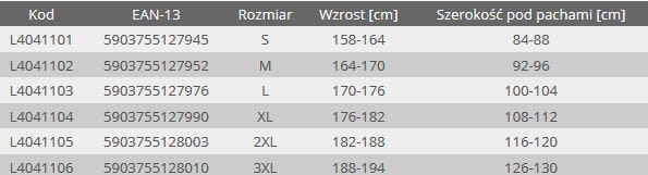 Poniżej tabela z rozmiarami dla lepszego doboru odzieży