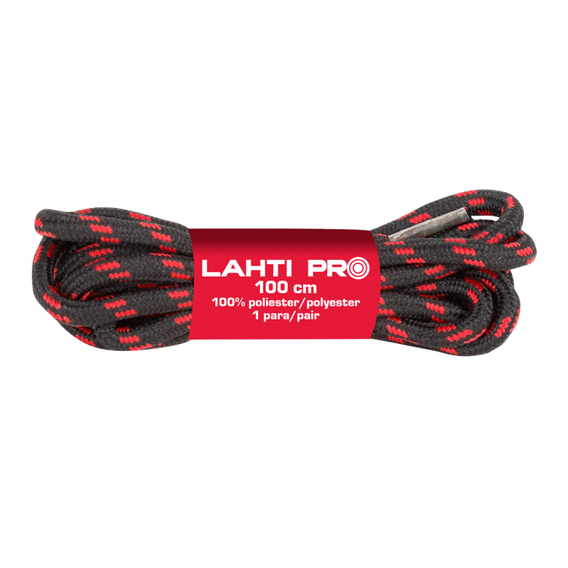 Sznurowadła wyprodukowane ze specjalnie selekcjonowanych włókien poliestrowych o średnicy 4 mm. Wzmocnione rdzeniem odpornym na przecieranie oraz zrywanie, charakteryzują się bardzo długą żywotnością. Sznurówki są odporne na wilgoć oraz ciężkie warunki w kolorze czarno-czerwonym o długości 100 cm. Pakowane są w opakowaniu po 10 par.
