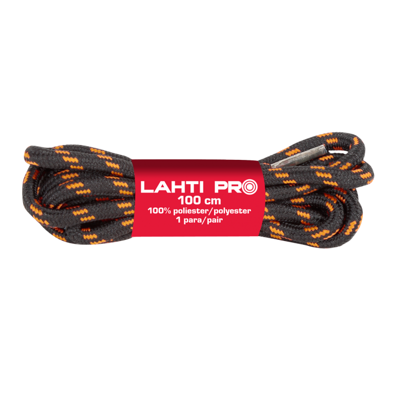 Sznurowadła wyprodukowane ze specjalnie selekcjonowanych włókien poliestrowych o średnicy 4 mm. Wzmocnione rdzeniem odpornym na przecieranie oraz zrywanie, charakteryzują się bardzo długą żywotnością. Sznurówki są odporne na wilgoć oraz ciężkie warunki w kolorze czarno-pomarańczowym o długości 100 cm. Pakowane są w opakowaniu po 10 par.