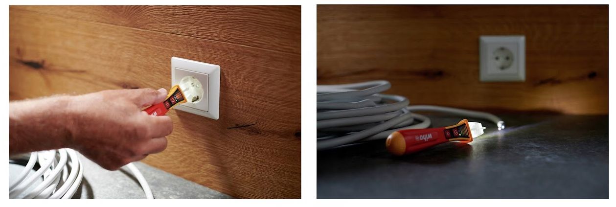 Przed rozpoczęciem instalacji elektrycznej elektrycy muszą upewnić się, że środowisko pracy jest wolne od napięcia. Próbnik napięcia jest wymagany do badania naprzemiennych pól elektrycznych lub lokalizowania domniemanych źródeł błędów. Pierwsze wskazanie, czy nie ma napięcia, jest możliwe przy użyciu bezdotykowego próbnika napięcia Wiha dzięki sygnałowi optycznemu i akustycznemu. Stale świecąca zielona dioda LED wskazuje, że urządzenie jest gotowe do pracy. Podczas sprawdzania napięcia diody LED świecą w zależności od natężenia zmiennego pola elektrycznego w kolorze od niebieskiego (słaby), przez pomarańczowy, do czerwonego (silny). Do użytkowania próbnika wymagane są dwie baterie AAA, które wchodzą wskład zestawu. Jeśli urządzenie nie jest używane przez 4 minuty, wyłącza się automatycznie, aby oszczędzać energię. Zintegrowana latarka LED umożliwia oświetlenie punktów pomiarowych w ciemnościach i może być używana jako latarka poprzez ręczne włączanie i wyłączanie. Dzięki poręcznym rozmiarom próbnik napięcia z klipsem pasuje do każdej koszuli i kieszeni spodni. Dzięki międzynarodowej końcówce pomiarowej próbnik napięcia nadaje się do wszystkich wariantów gniazdek na całym świecie. Jednobiegunowy próbnik napięcia podlega normie EN 61010-1 / IEC 61326 i jest przeznaczony dla CAT IV 1000 V AC.